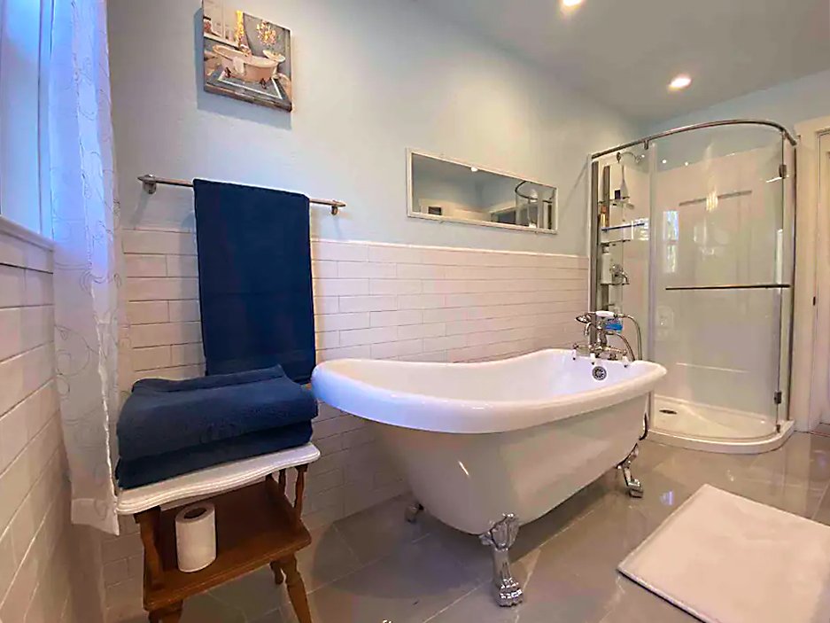 Blissfully enjoy our elegant and luxurious French clawfoot bathtub or modern standing shower. Crack open the bathroom window and enjoy the breeze and sounds of nature and sink into spa like comfort after a long day of hiking the mountains or driving to one of the many natural landscapes close by.